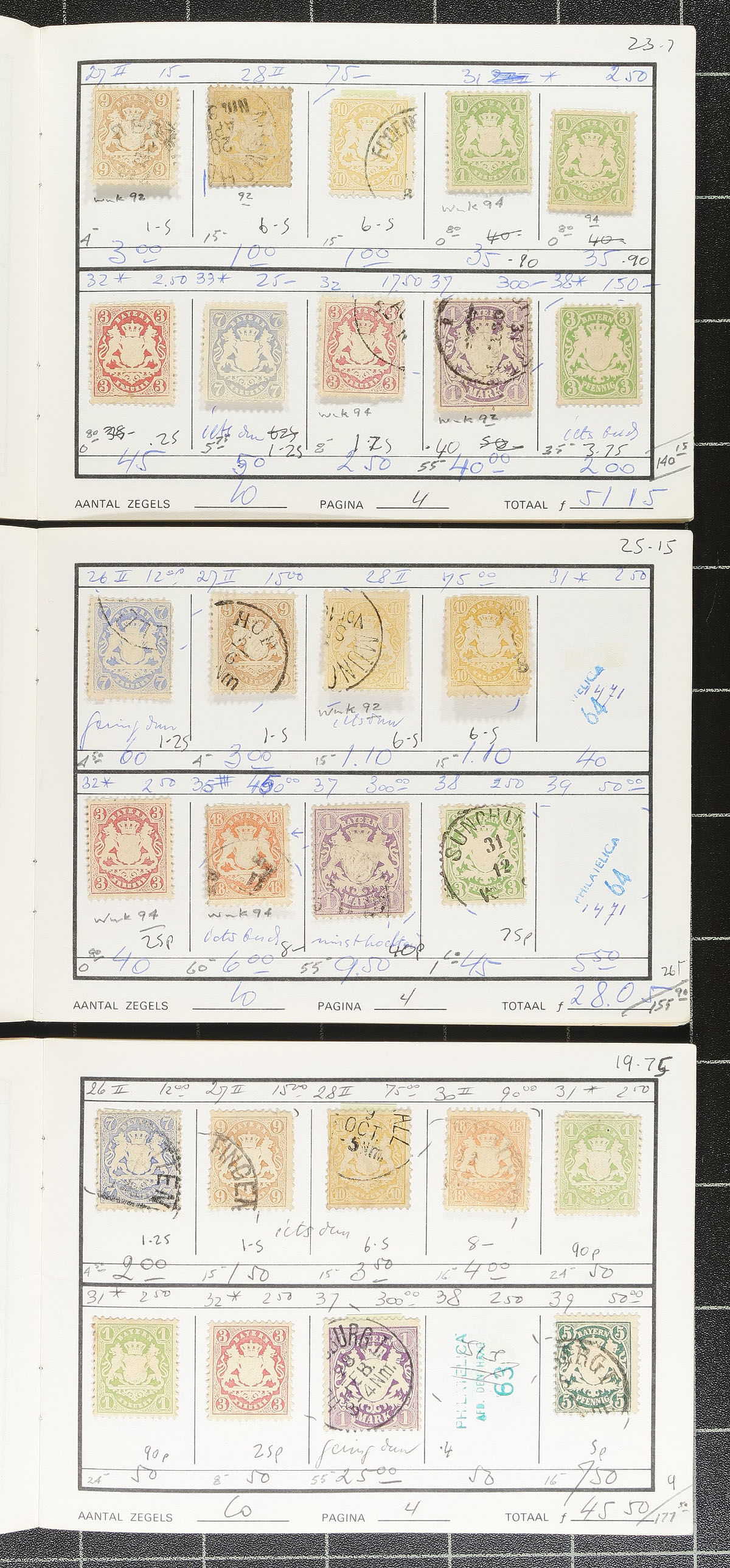 An old-time group of three retired circuit books, containing 386 stamps (mostly used) from the 1849-1920 period. These last saw the light of day in 1982! All pages imaged to give a full representation of what this lot contains. Expect the odd small fault, but overall very clean material, with lots of postmark interest. We have updated the catalogue prices in pencil below each stamp. 2026 Scott US$2,663.50 =