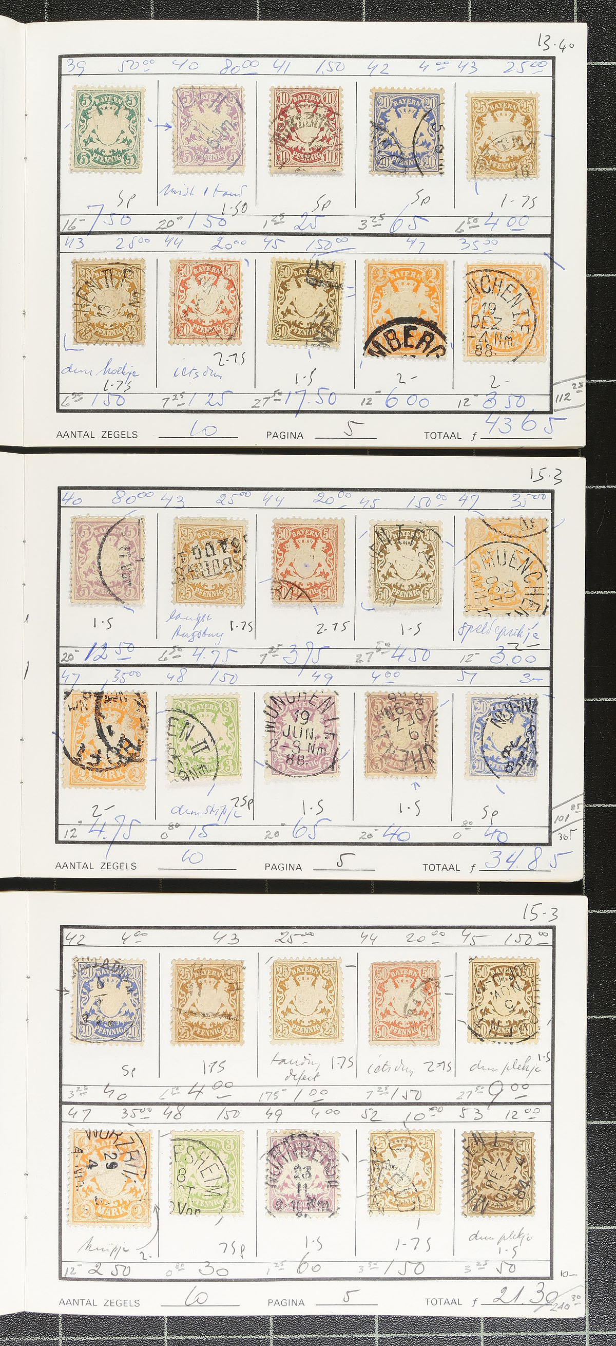 An old-time group of three retired circuit books, containing 386 stamps (mostly used) from the 1849-1920 period. These last saw the light of day in 1982! All pages imaged to give a full representation of what this lot contains. Expect the odd small fault, but overall very clean material, with lots of postmark interest. We have updated the catalogue prices in pencil below each stamp. 2026 Scott US$2,663.50 =
