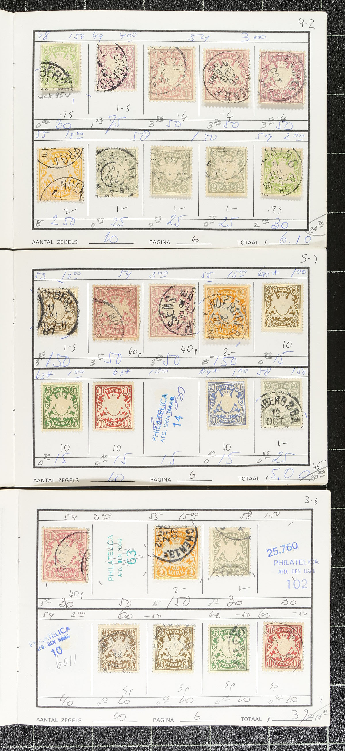 An old-time group of three retired circuit books, containing 386 stamps (mostly used) from the 1849-1920 period. These last saw the light of day in 1982! All pages imaged to give a full representation of what this lot contains. Expect the odd small fault, but overall very clean material, with lots of postmark interest. We have updated the catalogue prices in pencil below each stamp. 2026 Scott US$2,663.50 =