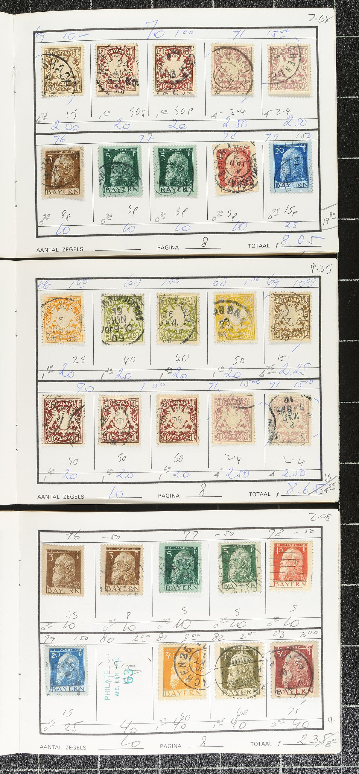 An old-time group of three retired circuit books, containing 386 stamps (mostly used) from the 1849-1920 period. These last saw the light of day in 1982! All pages imaged to give a full representation of what this lot contains. Expect the odd small fault, but overall very clean material, with lots of postmark interest. We have updated the catalogue prices in pencil below each stamp. 2026 Scott US$2,663.50 =