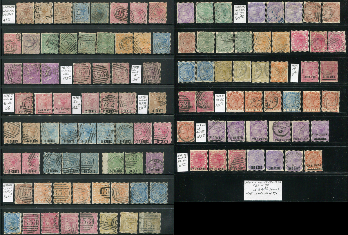 A stunning mint and used group of 1863-1893 Victorian issues, neatly arranged and identified on a double sided stockpage. Lots of better postmarks noted throughout, an excellent opportunity to acquire a large group of Victorian era stamps. A total of 111 stamps. 2026 Scott US$1,534.50 =