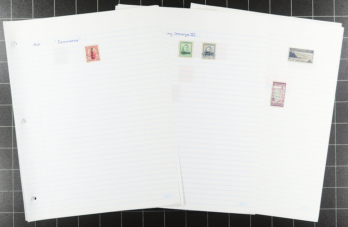 Balance of mint and primarily used New Zealand issues, 1880's-1990's, containing many hundreds of stamps in a variety of formats including stock and album pages, a Stanley Gibbons album (fairly picked through), and collector packs. The lot generally ranges from Scott #61/1092, containing a variety of material including singles, sets, souvenir sheets, semi-postals and other back of the book issues, varieties, etc. A cursory check indicated some material cataloguing $10 and up, including C4 (used), C5 (mh, c.v. $75 total). Some of the material has been catalogued by the owner using a 2008 Scott catalogue totaling US$561.00, leaving value for collectors. A few small faults with a few of the early issues, overall fine to very fine. Estimate =