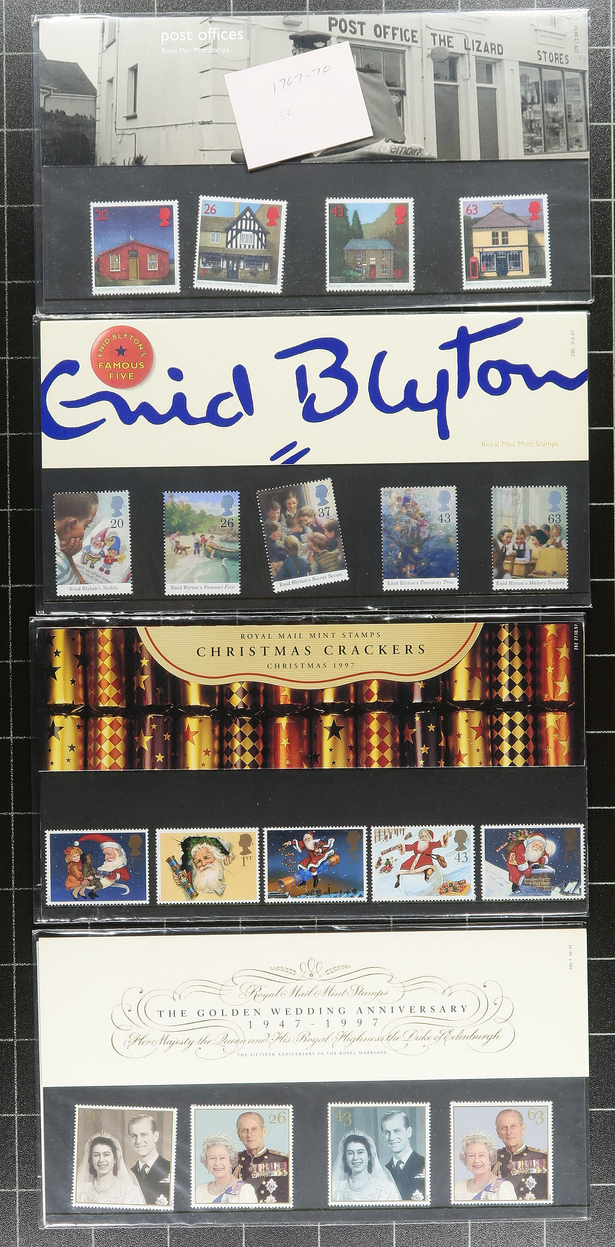 Small group of primarily never hinged Great Britain, including sets of sheets (Scott #s 910-918, all folded), along with roughly 20 presentation packs from the 1990's, and a few other items. Owner's Scott 2019 catalogue value for most of the items totals $330.00, with face value alone totaling £231.00. A nice little lot for mint collectors or postage users. Estimate =