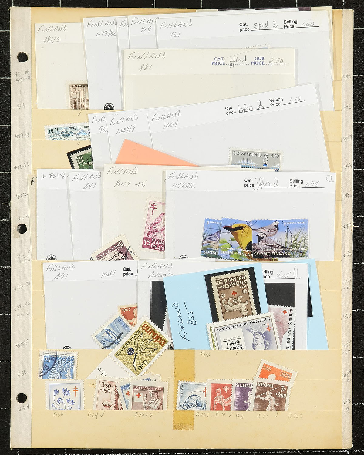 Old-time collection / accumulation of mint and primarily used Finland, 1866-1961, containing many hundreds of stamps on several homemade pages or stock pages. The lot generally ranges from Scott #7/386, noting singles, sets, along with mint and used semi-postals, and a few stamps from Aland and Karelia. The lot itself is a very interesting accumulation and fairly unorganized of mostly early issues noting #s used 7 (x2), 9, 13, 22, 25, 27-28, 30, and mint 49, 54, 111-118, just to name a few. A cursory check indicated some material cataloguing $10 to $15 and up each, leaving potential finds, including better postmarks to the dedicated collector. A nice unpicked lot that has not been on the market in decades, a few faults as expected with a few early issues, overall fine to very fine. Estimate =
