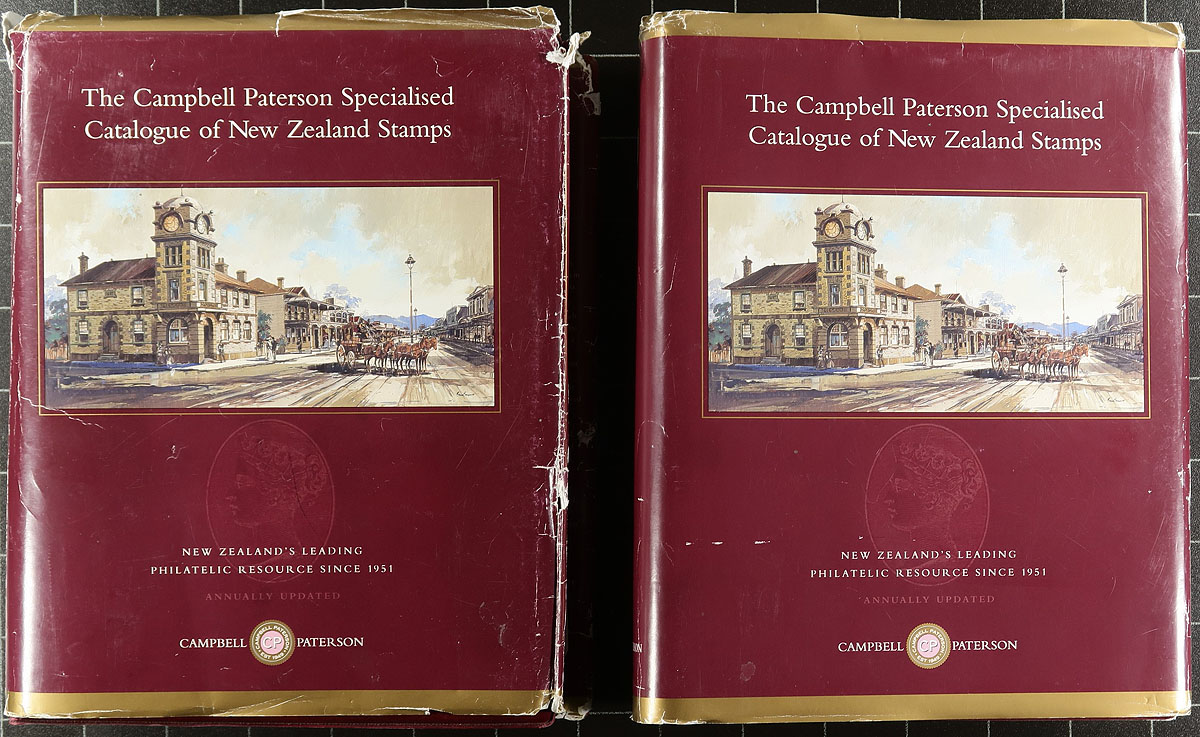 Literature Holding. A group of catalogues, featuring the two volume Campbell Paterson (with updates to 2021, one binder damaged), three First Day Cover cachet catalogues by Jones (regular issue pre-decimal & Health to 2000) and Thackery. A well loved, five booklet complete set of Samuels postal stationery catalogues (1988-1993, still the current versions). Finishing with the 2002 Heslop/Holmes Cinderella Catalogue. A mix of current and out of print references filling a bankers box. Nice to get these here in Canada, as most have to be ordered from overseas. Estimate =