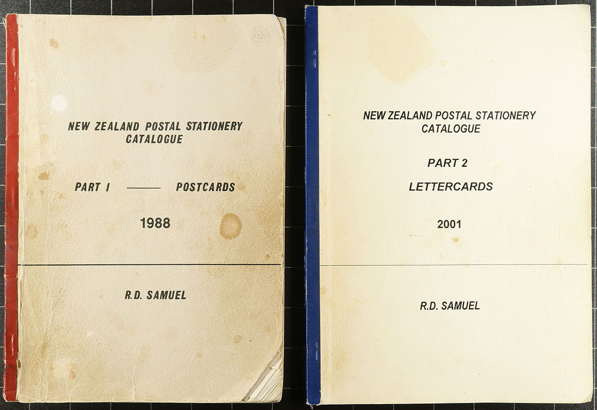 Literature Holding. A group of catalogues, featuring the two volume Campbell Paterson (with updates to 2021, one binder damaged), three First Day Cover cachet catalogues by Jones (regular issue pre-decimal & Health to 2000) and Thackery. A well loved, five booklet complete set of Samuels postal stationery catalogues (1988-1993, still the current versions). Finishing with the 2002 Heslop/Holmes Cinderella Catalogue. A mix of current and out of print references filling a bankers box. Nice to get these here in Canada, as most have to be ordered from overseas. Estimate =