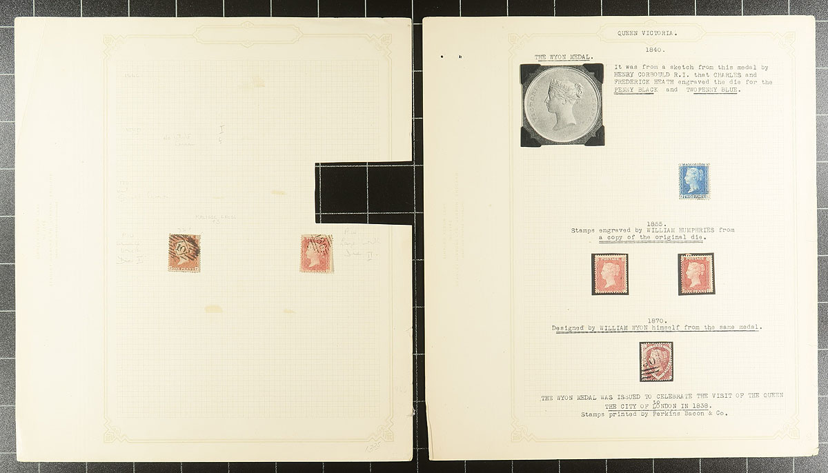 Scraps of collections (Part 1). We see a surprising number of British collection fragments: pages taken (and sometimes cut out) from a variety of sources, with different collecting styles and focuses. These pages often have some better singles, nice cancels and studies of plate numbers. For whatever reason, they have been left somewhat intact, awaiting the next collector to take a kick at improving their collection. This selection of pages, from at least four collectors, includes Queen Victoria with lots of “Penny Reds” and “Tuppence Blue”, and not much after 1860. We urge you to ignore the 1947 catalogue prices. Duplication and mixed condition is to be expected. Estimate =
