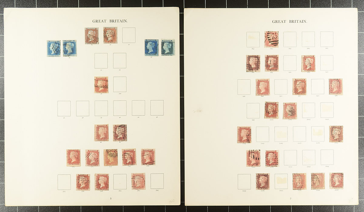 Scraps of collections (Part 2). We see a surprising number of British collection fragments: pages taken (and sometimes cut out) from a variety of sources, with different collecting styles and focuses. These pages often have some better singles, nice cancels and studies of plate numbers. For whatever reason, they have been left somewhat intact, awaiting the next collector to take a kick at improving their collection. This selection of pages, from at least four collectors, includes Queen Victoria with lots of “Penny Reds” (including some attempted plating of #33) and a smattering of “Tuppence Blue”, with not much after 1860. We urge you to ignore the 1947 catalogue prices. Duplication and mixed condition is to be expected. Estimate =