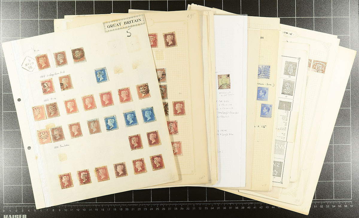 Scraps of collections (Part 3). We see a surprising number of British collection fragments: pages taken (and sometimes cut out) from a variety of sources, with different collecting styles and focuses. These pages often have some better singles, nice cancels and studies of plate numbers. For whatever reason, they have been left somewhat intact, awaiting the next collector to take a kick at improving their collection. This selection of pages, from at least four collectors, includes Queen Victoria starting with some “Penny Reds” , progressing through the “Jubilee” issue, a smattering of KEVII and a couple of pages of KGV plate number singles. The twist to this lot is a mix of used and mint postage dues. We urge you to ignore the 1947 catalogue prices. Duplication and mixed condition is to be expected. Estimate =