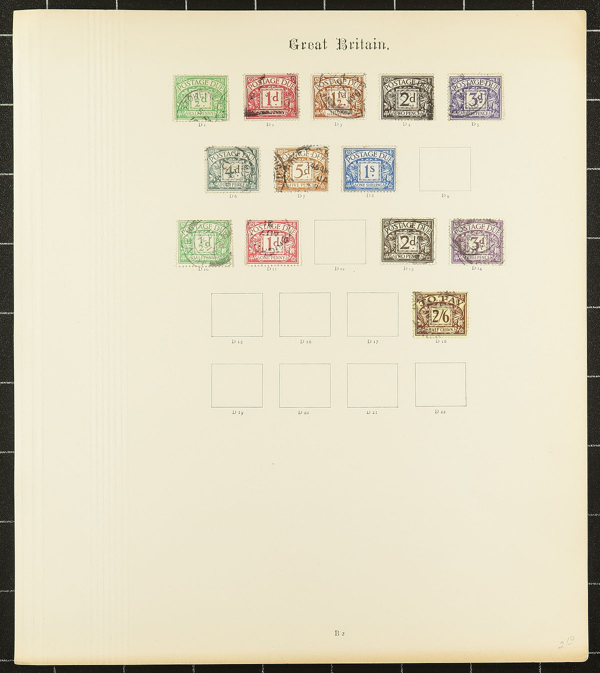 Scraps of collections (Part 3). We see a surprising number of British collection fragments: pages taken (and sometimes cut out) from a variety of sources, with different collecting styles and focuses. These pages often have some better singles, nice cancels and studies of plate numbers. For whatever reason, they have been left somewhat intact, awaiting the next collector to take a kick at improving their collection. This selection of pages, from at least four collectors, includes Queen Victoria starting with some “Penny Reds” , progressing through the “Jubilee” issue, a smattering of KEVII and a couple of pages of KGV plate number singles. The twist to this lot is a mix of used and mint postage dues. We urge you to ignore the 1947 catalogue prices. Duplication and mixed condition is to be expected. Estimate =
