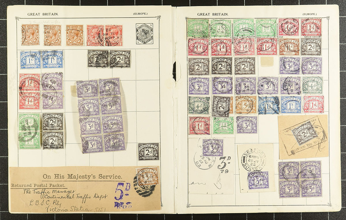 Scraps of collections (Part 3). We see a surprising number of British collection fragments: pages taken (and sometimes cut out) from a variety of sources, with different collecting styles and focuses. These pages often have some better singles, nice cancels and studies of plate numbers. For whatever reason, they have been left somewhat intact, awaiting the next collector to take a kick at improving their collection. This selection of pages, from at least four collectors, includes Queen Victoria starting with some “Penny Reds” , progressing through the “Jubilee” issue, a smattering of KEVII and a couple of pages of KGV plate number singles. The twist to this lot is a mix of used and mint postage dues. We urge you to ignore the 1947 catalogue prices. Duplication and mixed condition is to be expected. Estimate =