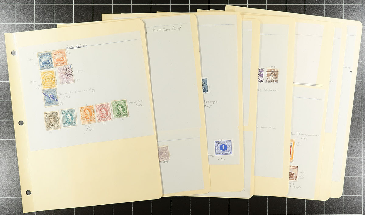 Seventy-five year young "sampler" collection, with representation from over 100 different countries and colonies. A mix of mint and used stamps, including some "back of the book" and some nice cancels amongst the used. The grandson of the original collector cut the original pages from their album and remounted them on 3-ring pages. While there are bits and pieces from all over, we noted strength in Europe (e.g. Belgium, Great Britain and colonies, Hungary, Netherlands, Portugal and colonies, Romania, Russia, Switzerland), Asia (China, Japan), South America (Argentina, Brazil). Most appear to be more common but better may be lurking amongst the 2000 stamps. Estimate =