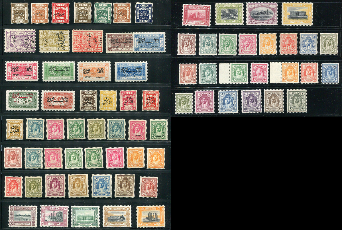 Nice selection of mint Jordanian issues from the British Mandate up to the end of WWII. Includes interesting overprints, coils, different dies and better singles such as #3B, #74I, #175a, #183. All hinged, with a few minor perforation faults. Not often seen material. 2024 Scott US$466.25 =