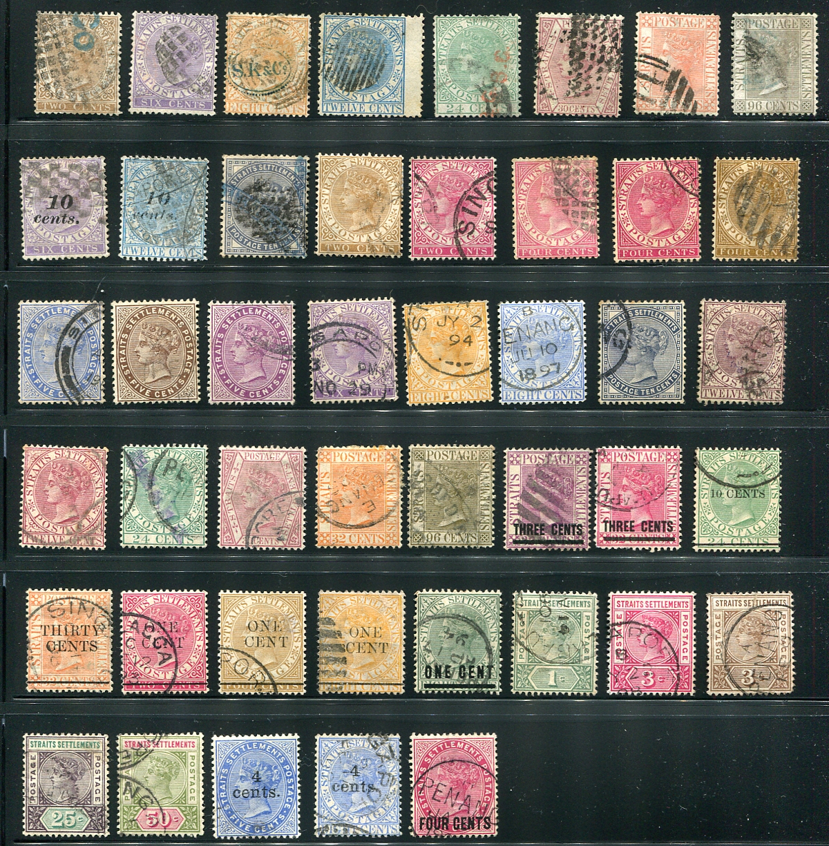Attractive used Queen Victoria selection, with lots of light and lovely cancels, a number of revalued stamps, with better (such as #10/18, #89). A couple have company "chops". These are often harder to find used than mint. A few minor perf faults are visible but overall this is a cleaner group than you will normally see. 2024 Scott US$627.35 =