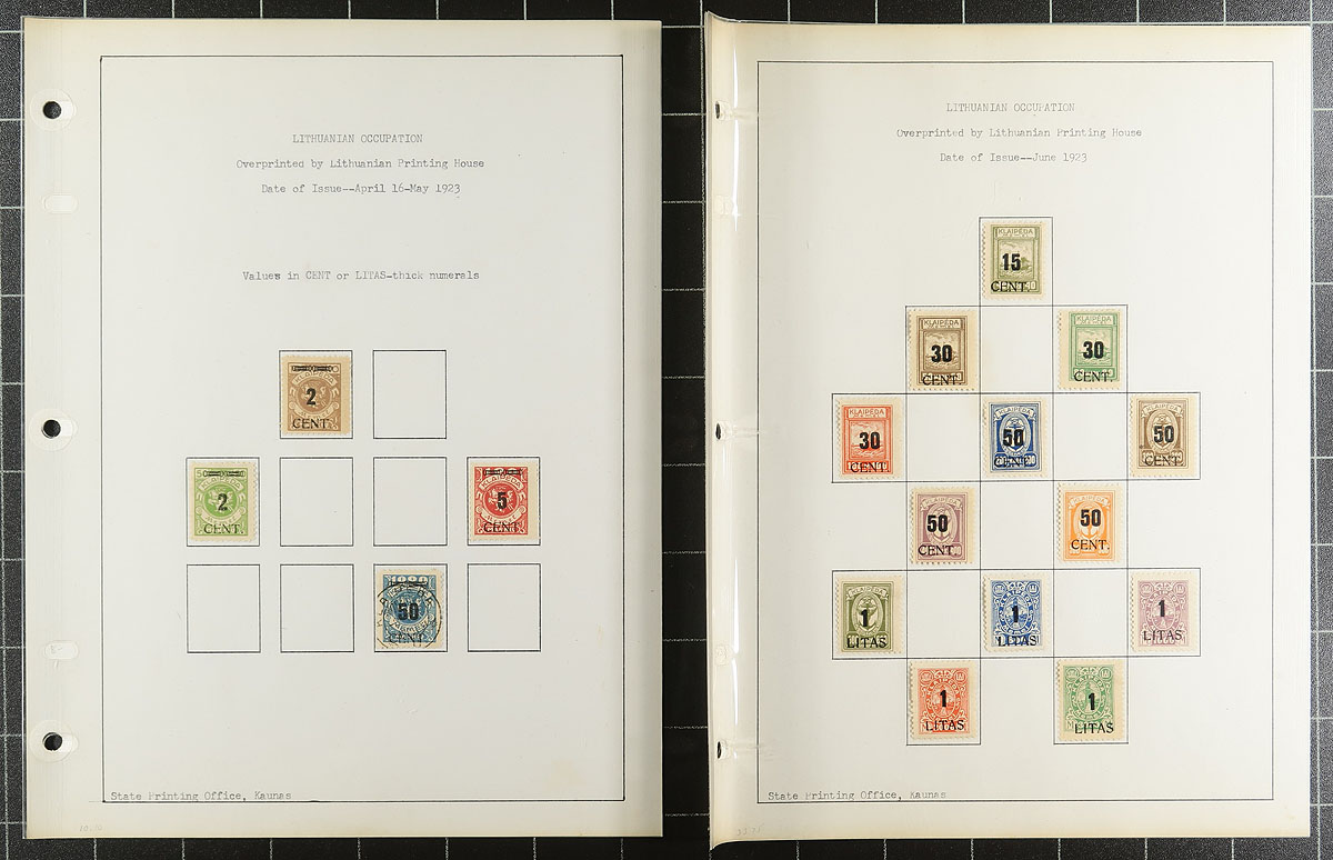 Tidy collection of mint and used Memel, 1920-1923, containing roughly 200 stamps in nicely organized homemade pages. The collection generally ranges from Scott #1/99, along with a few airmails, and several occupation stamps ranging from N1/N82. The collection contains primarily sets and partial sets, with some issues having a mint and or a used example. We noted some stamps and sets cataloguing $20 to $35 and up each. A lovely collection from an intriguing time period and should be continued until completion. Overall fine to very fine. 2026 Scott US$702.30 =