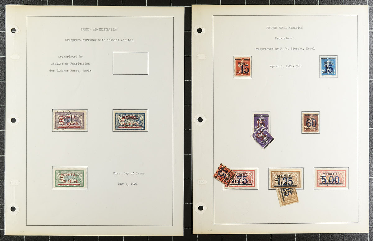 Tidy collection of mint and used Memel, 1920-1923, containing roughly 200 stamps in nicely organized homemade pages. The collection generally ranges from Scott #1/99, along with a few airmails, and several occupation stamps ranging from N1/N82. The collection contains primarily sets and partial sets, with some issues having a mint and or a used example. We noted some stamps and sets cataloguing $20 to $35 and up each. A lovely collection from an intriguing time period and should be continued until completion. Overall fine to very fine. 2026 Scott US$702.30 =