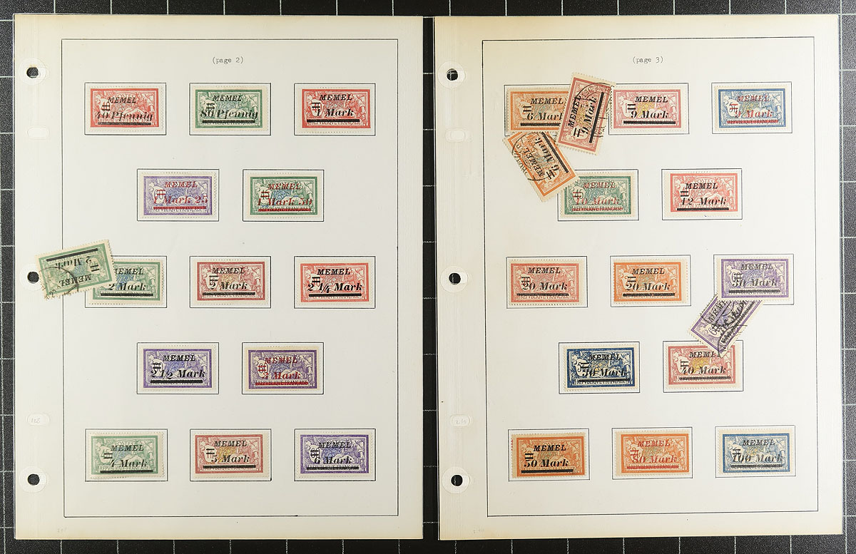 Tidy collection of mint and used Memel, 1920-1923, containing roughly 200 stamps in nicely organized homemade pages. The collection generally ranges from Scott #1/99, along with a few airmails, and several occupation stamps ranging from N1/N82. The collection contains primarily sets and partial sets, with some issues having a mint and or a used example. We noted some stamps and sets cataloguing $20 to $35 and up each. A lovely collection from an intriguing time period and should be continued until completion. Overall fine to very fine. 2026 Scott US$702.30 =