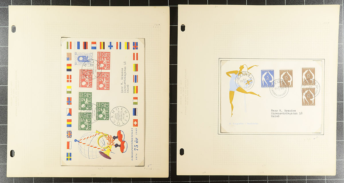 Old-time collection of mint and used Sweden, 1900-1949, containing several hundreds of stamps on several homemade pages. The collection generally ranges from Scott #65/414, containing mint and or used singles, sets, coils (including pairs), blocks, semi-postals, airmails, and a few first day covers. We note some stamps, sets, and partial sets cataloguing $10 to $30 each, including Scott #248-262 (mint and used set, c.v. $135.80 total. Duplication up to 10 for some issues, but does not account for the possible perforation, shade, watermark differences. A very nice lot that has not been on the market in decades. Overall fine too very fine. 2026 Scott US$725.95 =