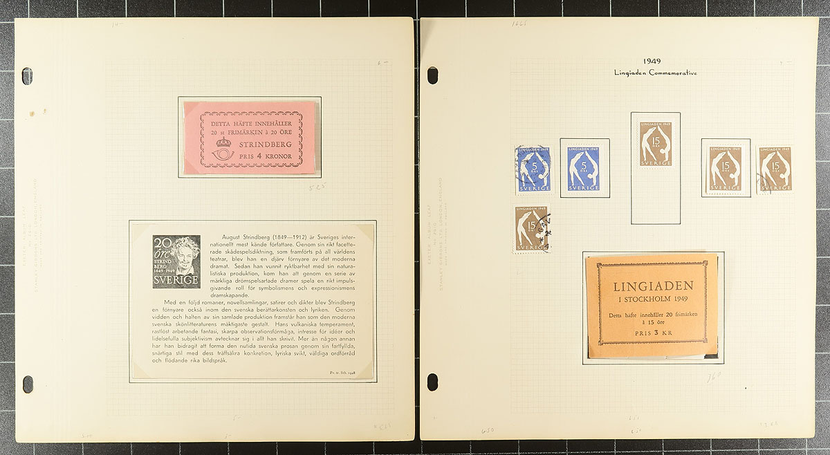 Old-time collection of mint and used Sweden, 1900-1949, containing several hundreds of stamps on several homemade pages. The collection generally ranges from Scott #65/414, containing mint and or used singles, sets, coils (including pairs), blocks, semi-postals, airmails, and a few first day covers. We note some stamps, sets, and partial sets cataloguing $10 to $30 each, including Scott #248-262 (mint and used set, c.v. $135.80 total. Duplication up to 10 for some issues, but does not account for the possible perforation, shade, watermark differences. A very nice lot that has not been on the market in decades. Overall fine too very fine. 2026 Scott US$725.95 =