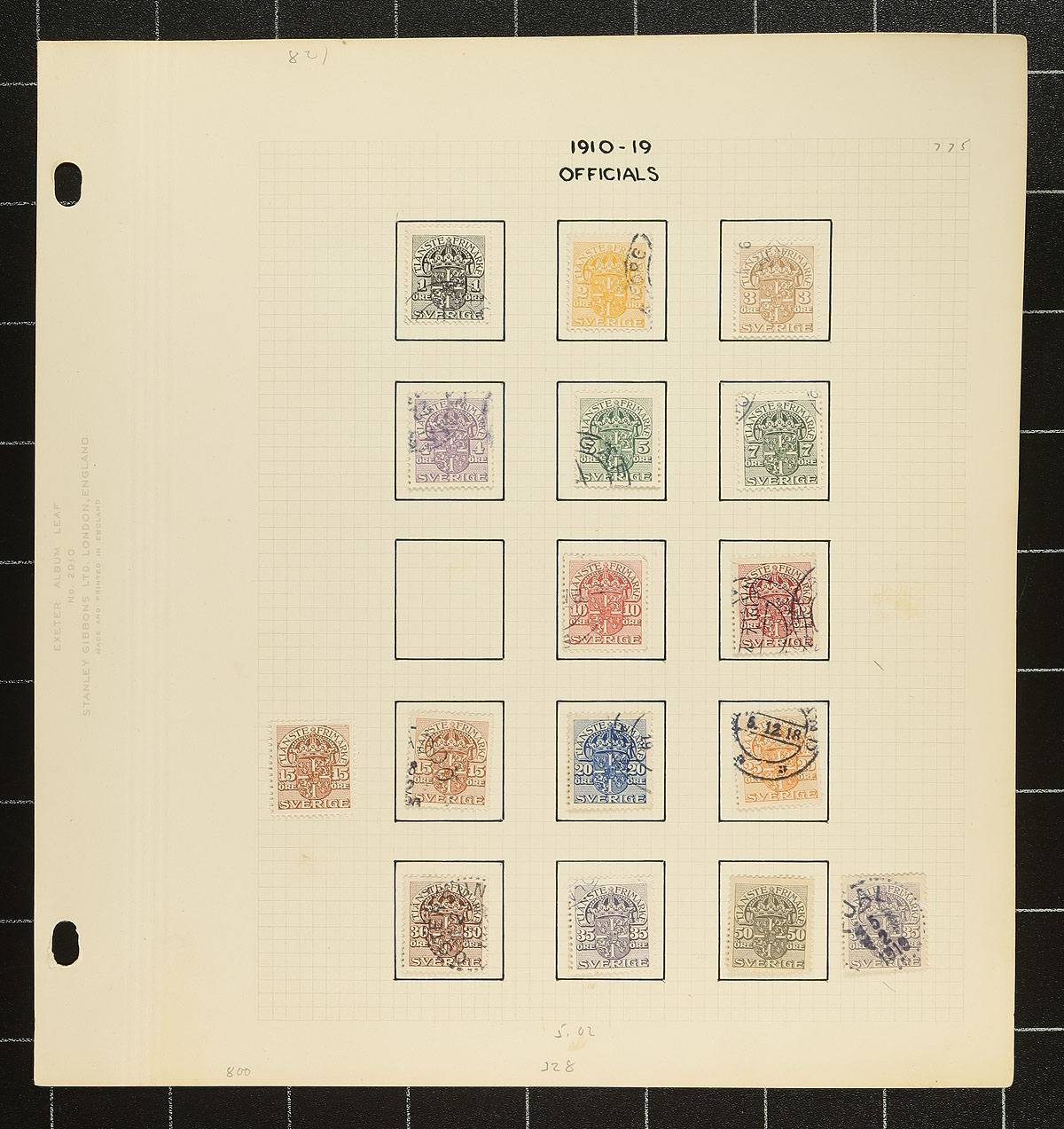 Classic collection of mint and used Sweden back of the book issues, 1877-1919, containing just over 100 stamps on 4 old-time homemade pages. The collection contains primarily used postage due and parcel post issues, noting some items cataloguing $10 and upp each including #s J18, J22, O3 ($52.50), O4 (x3, c.v. $195 total), O23 (x2, $50 total), just to name a few. A nice classic collection from this popular collecting country. Overall fine to very fine. 2026 Scott US$721.20 =