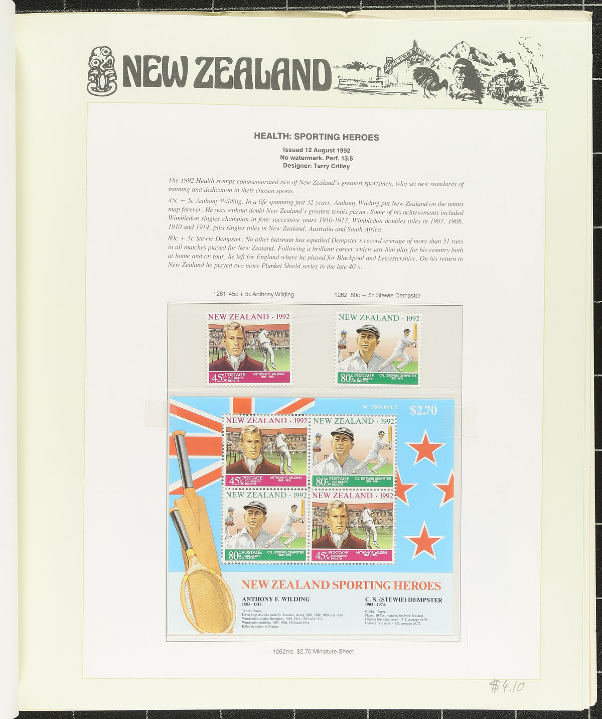 Collection of primarily never hinged New Zealand, 1953-2007, containing many hundreds of stamps in several album or stock pages. The lot generally ranges from Scott #285/2161, containing several sets, along with a few blocks and souvenir sheets, with the bulk of material post-1980. A spot check indicated some material cataloguing $10 and up, with the owner's 2015 Scott catalogue value for the lot totaling US$772.00. Face value alone would be at least a few hundred dollars. A nice clean lot with mild duplication possible, overall fine to very fine. Estimate =