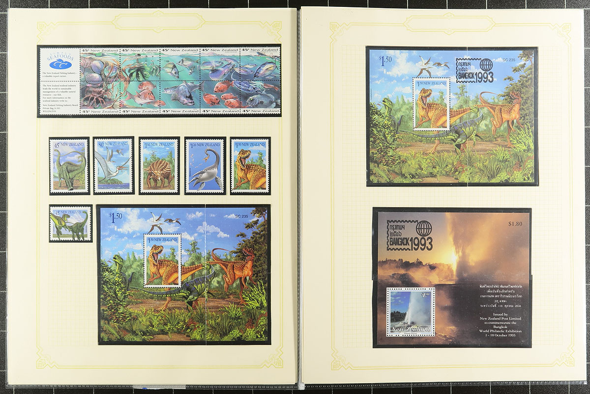 Collection of primarily never hinged New Zealand, 1953-2007, containing many hundreds of stamps in several album or stock pages. The lot generally ranges from Scott #285/2161, containing several sets, along with a few blocks and souvenir sheets, with the bulk of material post-1980. A spot check indicated some material cataloguing $10 and up, with the owner's 2015 Scott catalogue value for the lot totaling US$772.00. Face value alone would be at least a few hundred dollars. A nice clean lot with mild duplication possible, overall fine to very fine. Estimate =