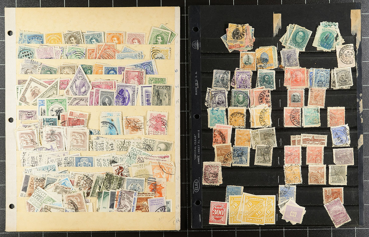 Consignment remainders of thousands of worldwide issues, 1890's-1980's, in roughly 75 to 100 album or stock pages. A cursory check indicated material from Europe and South America countries including Belgium, Brazil, Argentina, Czechoslovakia, Switzerland, just to name a few. We did spot some late 1890's material, though the bulk appears to range from the 1920s onwards. A nice project for the worldwide collector with unknown possibilities, overall fine to very fine. Estimate =