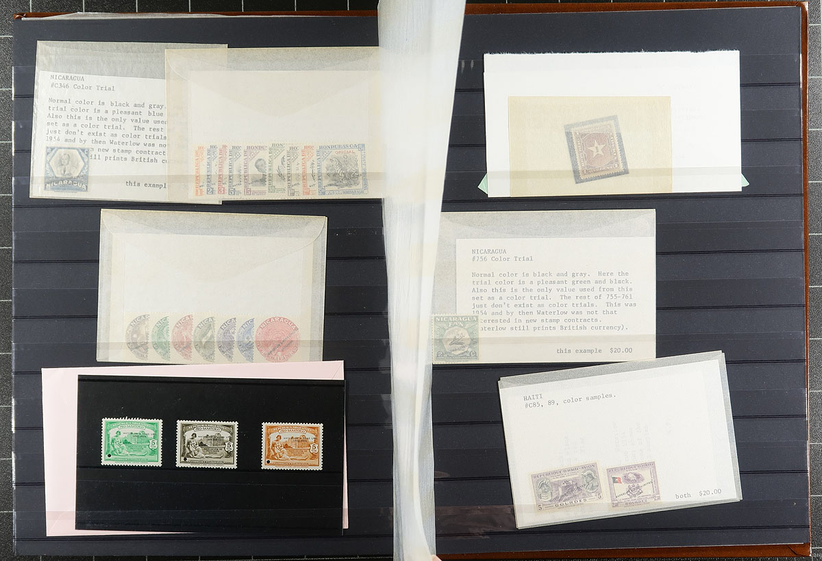 A 16-page Unisafe stockbook (in VF condition) containing Kasimir Bileski offerings. Noted "Stik-N-Tik", QEII Centennials, $2.00 Kluane paper varieties, Officials, FDC, $1.00 Vancouver Harbour, definitives, commemoratives "Pembina Local Post", "chewing gum" booklet panes and a smattering of Nicaragua. Many still with the always-interesting Bileski write-ups / pricing. Estimate =