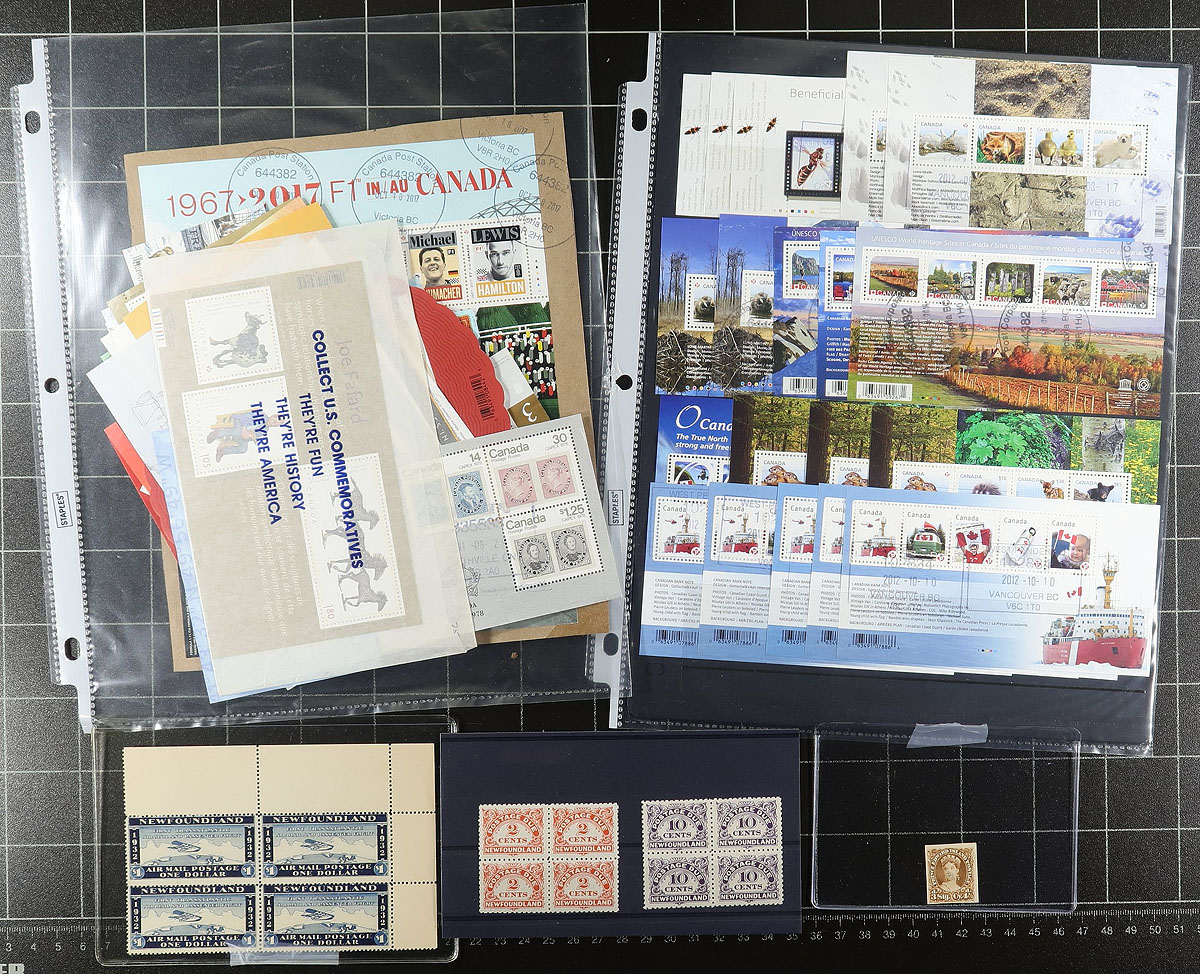 Box of Canadian "Catch All" #1. The first of three offerings in this sale, sure to please the philatelic sorter. Containing a wide-array of material, we did note mint and used including Admirals, Small Queens, Provinces, modern souvenir sheets, Post Office thematic packs and more! Many still on the original auction/bidboard cards from when originally purchased. Estimate =