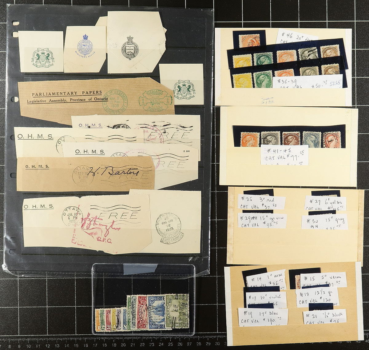 Box of Canadian "Catch All" #2. The second of three offerings in this sale, sure to please the philatelic sorter. Containing a wide-array of material, we did note mint and used including Admirals, Plate Blocks, Post Office packs, Post Office Thematic Collections, Officials etc! Many still on the original auction/bidboard cards from when originally purchased. Estimate =