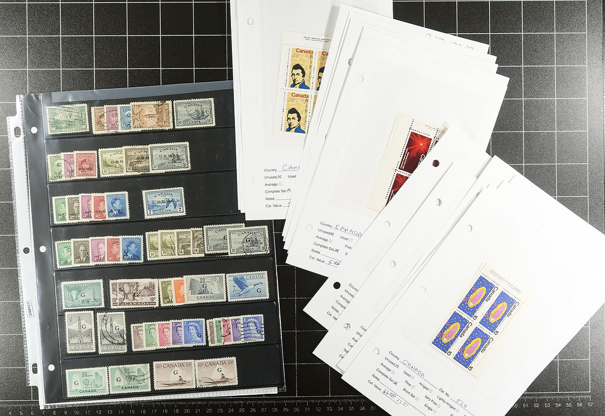 Box of Canadian "Catch All" #2. The second of three offerings in this sale, sure to please the philatelic sorter. Containing a wide-array of material, we did note mint and used including Admirals, Plate Blocks, Post Office packs, Post Office Thematic Collections, Officials etc! Many still on the original auction/bidboard cards from when originally purchased. Estimate =