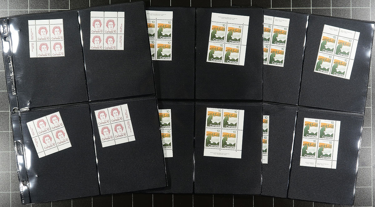 Box of Canadian "Catch All" #3. The third and final of three offerings in this sale, sure to please the philatelic sorter. Containing a wide-array of material, we did note mint and used including Officials, Plate Blocks, early Canada, and 5x the $5.00 Fabric Flag (mint), plus more! Many still on the original auction/bidboard cards from when originally purchased. Estimate =