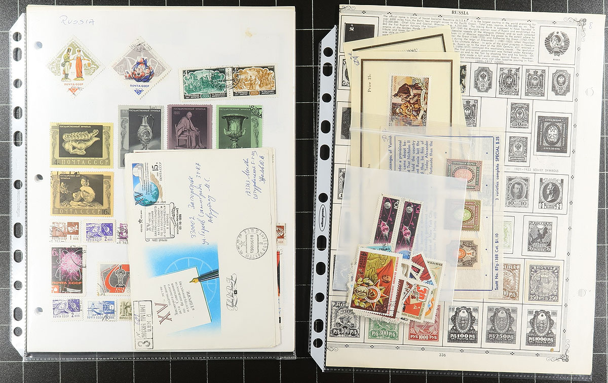 Accumulation of mint and used Russia, containing a few thousand stamps in a variety of formats including several album pages, glassines, stock pages, etc. A quick cursory check indicated mint and or used singles, sets, a few souvenir sheets, and more, noting a few sets cataloguing $10 and up, with the majority of material generally ranging from the 1920's to the 1990's. Owner's 2016 Scott catalogue value for only a portion of the lot totals $421.00, leaving potential value for collectors and dealers to organize. A nice lot for the worldwide collector. Estimate =