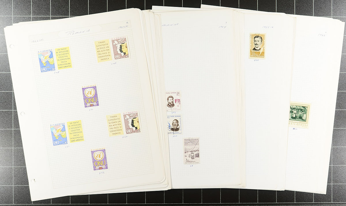 Consignment remainders of mint and used Romania, containing a few thousand stamps in over 100 album pages. A cursory check indicated mostly a used accumulation containing singles and sets, generally ranging from the 1890's to the 1990's. A nice lot with most cancels appearing to be cto, still a useful lot for the worldwide collector, overall fine to very fine. Estimate =