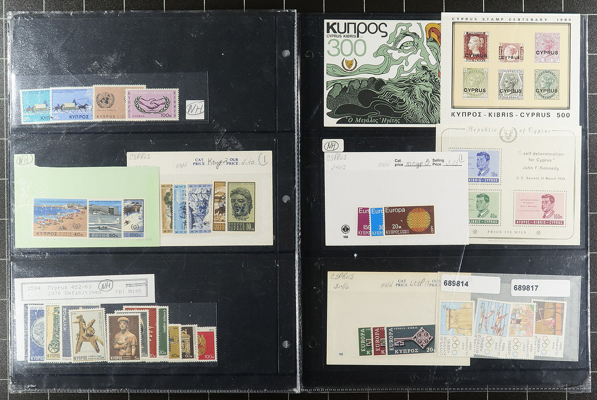Group of mint and used worldwide material in album pages, stock pages and cards, 1920's-1990's. The lot contains several hundreds of stamps, along with booklets, panes, sheetlets, etc., with representation from a handful of mostly European countries including France, Danzig, Austria, Cyprus, and a few more, along with Australia and New Zealand. A spot check indicated some material cataloguing $10 to $15 and up. Overall fine to very fine. Owner's old 2010 Scott US$932.00 =
