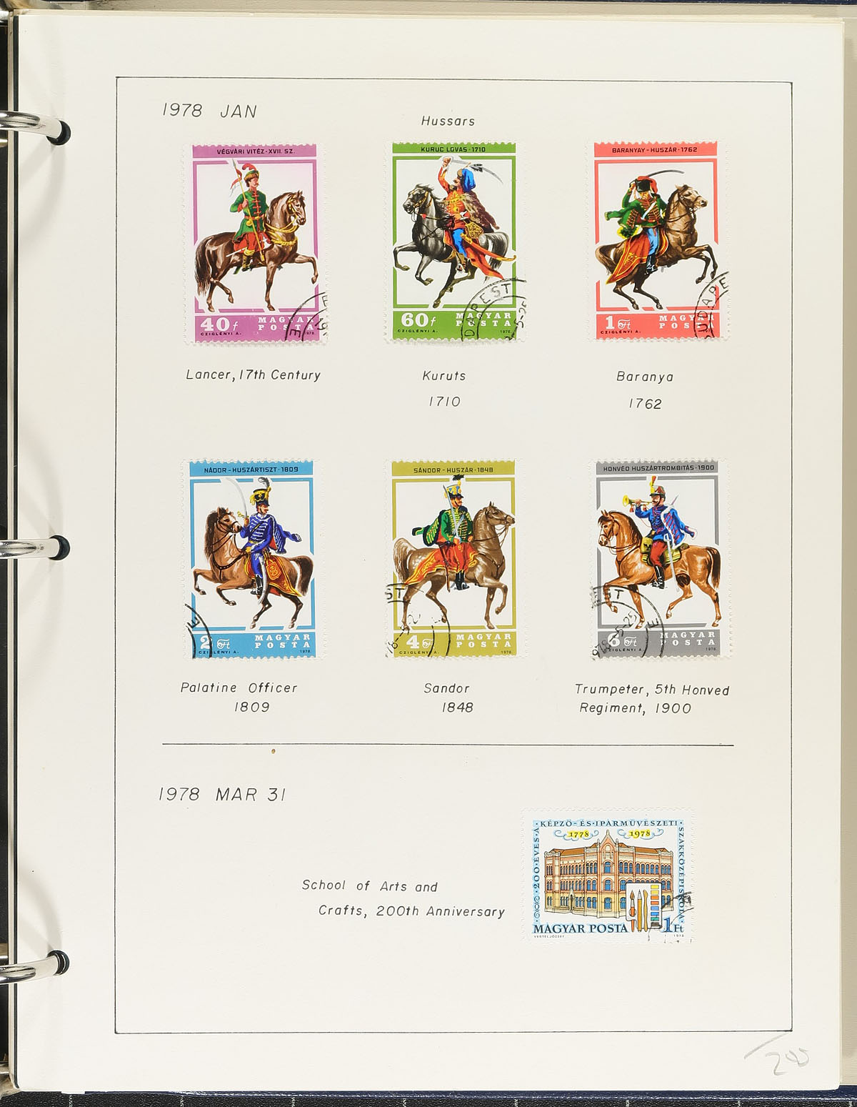 Large accumulation of mint and used Hungary, 1870's-2000's, containing several thousands of stamps in over 100 stock or album pages, and a few stockbooks. A cursory check indicated material ranging from Scott #4/3200, including singles, sets, souvenir sheets, back of the book issues, and a stockbook of used occupation stamps. We note some material cataloguing $5 to $10 each, with the owner's 2012 Scott catalogue value for the majority of material totaling $830.00, leaving better finds for the dedicated collector. A good lot for the worldwide collector, overall fine to very fine. Estimate =