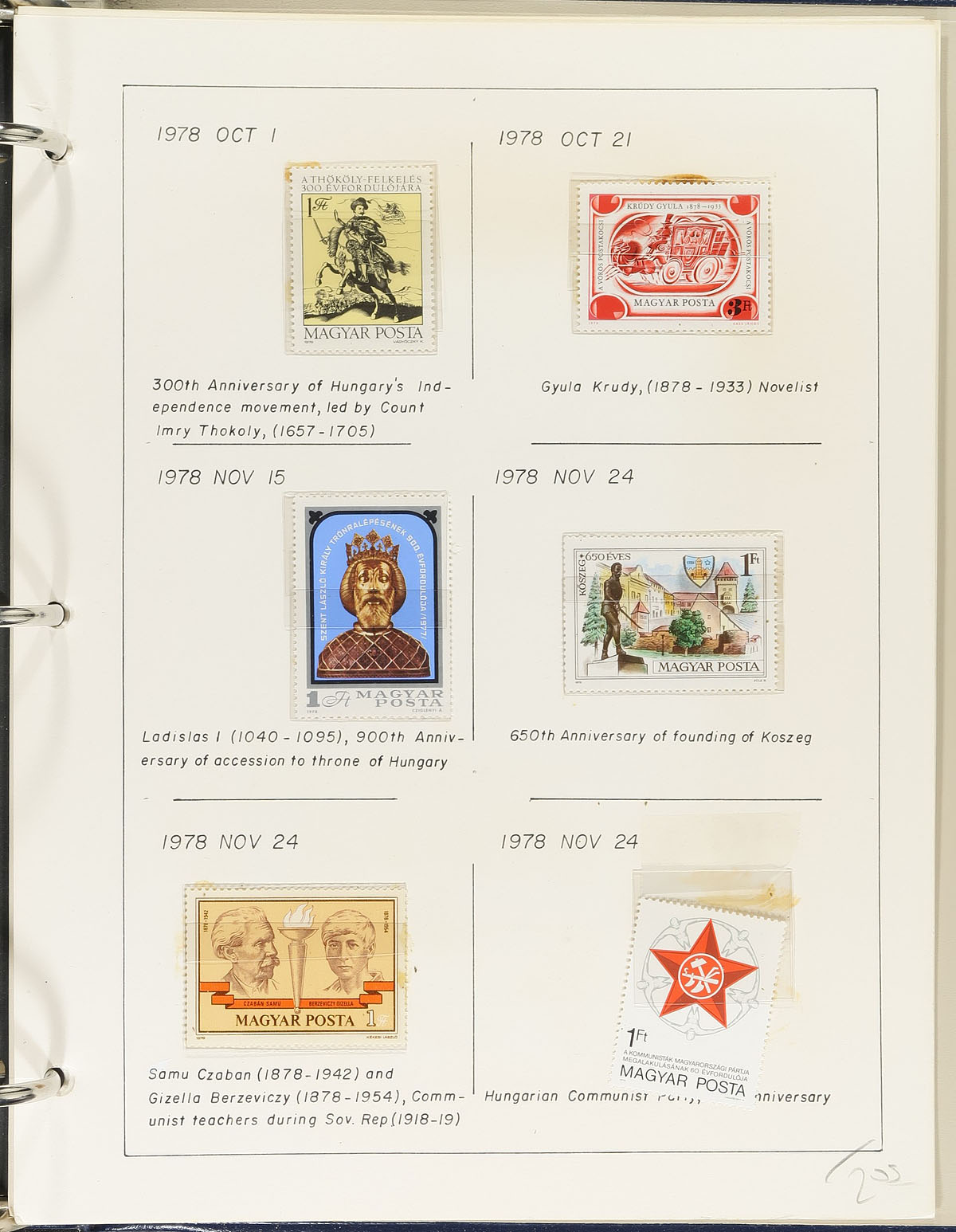 Large accumulation of mint and used Hungary, 1870's-2000's, containing several thousands of stamps in over 100 stock or album pages, and a few stockbooks. A cursory check indicated material ranging from Scott #4/3200, including singles, sets, souvenir sheets, back of the book issues, and a stockbook of used occupation stamps. We note some material cataloguing $5 to $10 each, with the owner's 2012 Scott catalogue value for the majority of material totaling $830.00, leaving better finds for the dedicated collector. A good lot for the worldwide collector, overall fine to very fine. Estimate =