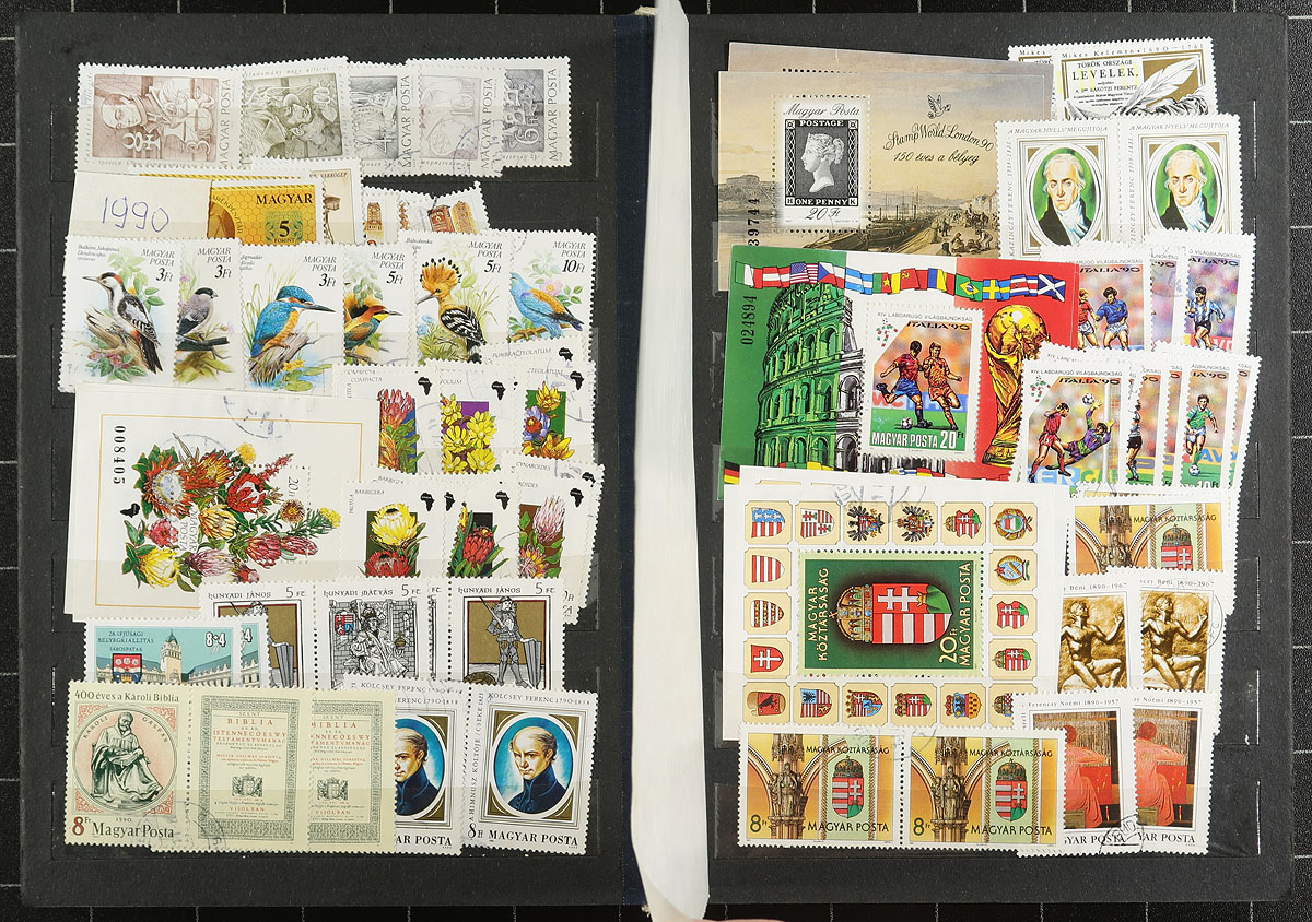 Large accumulation of mint and used Hungary, 1870's-2000's, containing several thousands of stamps in over 100 stock or album pages, and a few stockbooks. A cursory check indicated material ranging from Scott #4/3200, including singles, sets, souvenir sheets, back of the book issues, and a stockbook of used occupation stamps. We note some material cataloguing $5 to $10 each, with the owner's 2012 Scott catalogue value for the majority of material totaling $830.00, leaving better finds for the dedicated collector. A good lot for the worldwide collector, overall fine to very fine. Estimate =
