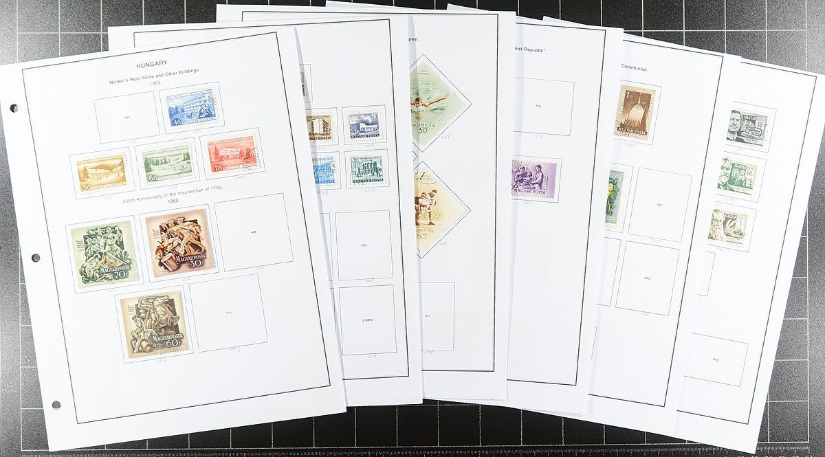 Large accumulation of mint and used Hungary, 1870's-2000's, containing several thousands of stamps in over 100 stock or album pages, and a few stockbooks. A cursory check indicated material ranging from Scott #4/3200, including singles, sets, souvenir sheets, back of the book issues, and a stockbook of used occupation stamps. We note some material cataloguing $5 to $10 each, with the owner's 2012 Scott catalogue value for the majority of material totaling $830.00, leaving better finds for the dedicated collector. A good lot for the worldwide collector, overall fine to very fine. Estimate =