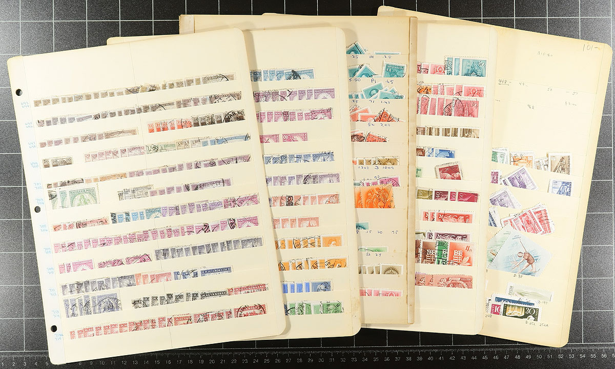 Large accumulation of mint and used Hungary, 1870's-2000's, containing several thousands of stamps in over 100 stock or album pages, and a few stockbooks. A cursory check indicated material ranging from Scott #4/3200, including singles, sets, souvenir sheets, back of the book issues, and a stockbook of used occupation stamps. We note some material cataloguing $5 to $10 each, with the owner's 2012 Scott catalogue value for the majority of material totaling $830.00, leaving better finds for the dedicated collector. A good lot for the worldwide collector, overall fine to very fine. Estimate =