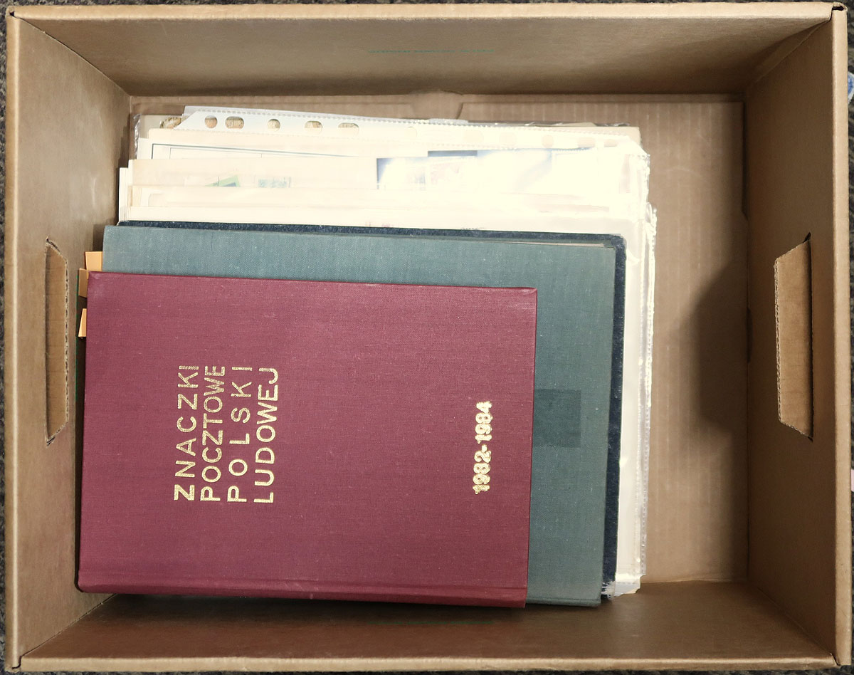 Large accumulation of mint and used Poland, 1918-1995, containing a few thousand stamps on several album pages and in 3 stockbooks. The lot generally ranges from Scott #11/3237, containing singles, several sets, and souvenir sheets, along with some back of the book issues, and some interesting "GROSZY" overprints. The strength of the lot appears to be in the 3 stockbooks, containing year sets from 1982-1984, along with several mint and used issues organized by topic, including air transportation, space, ships, nature, religion, and much more. Unchecked for catalogue values leaving finds for the dedicated collector, overall fine to very fine. Estimate =