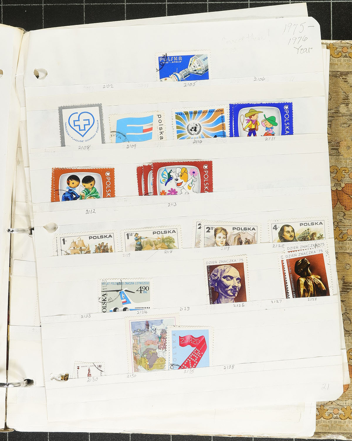 Large accumulation of mint and used Poland, 1918-1995, containing a few thousand stamps on several album pages and in 3 stockbooks. The lot generally ranges from Scott #11/3237, containing singles, several sets, and souvenir sheets, along with some back of the book issues, and some interesting "GROSZY" overprints. The strength of the lot appears to be in the 3 stockbooks, containing year sets from 1982-1984, along with several mint and used issues organized by topic, including air transportation, space, ships, nature, religion, and much more. Unchecked for catalogue values leaving finds for the dedicated collector, overall fine to very fine. Estimate =
