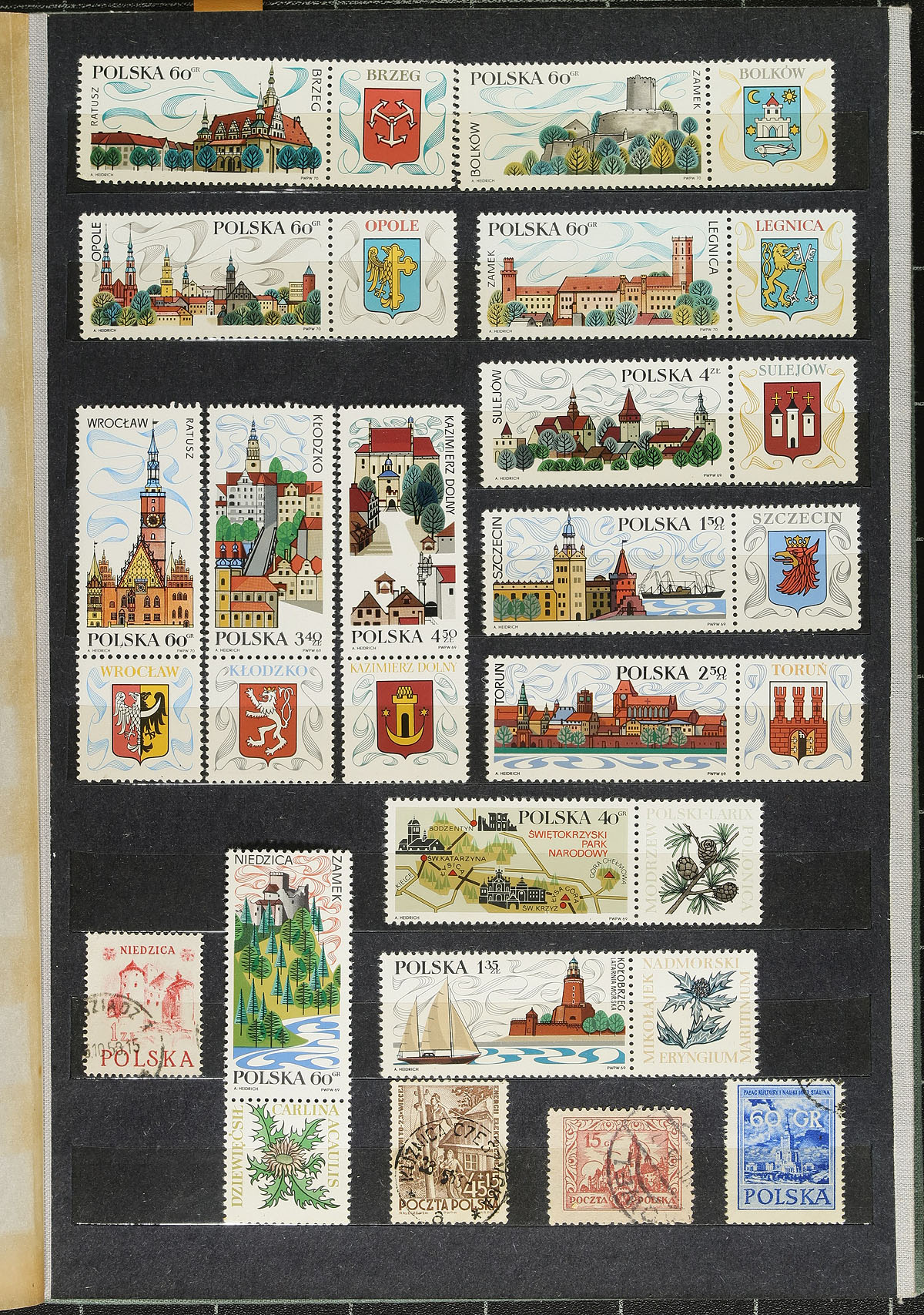 Large accumulation of mint and used Poland, 1918-1995, containing a few thousand stamps on several album pages and in 3 stockbooks. The lot generally ranges from Scott #11/3237, containing singles, several sets, and souvenir sheets, along with some back of the book issues, and some interesting "GROSZY" overprints. The strength of the lot appears to be in the 3 stockbooks, containing year sets from 1982-1984, along with several mint and used issues organized by topic, including air transportation, space, ships, nature, religion, and much more. Unchecked for catalogue values leaving finds for the dedicated collector, overall fine to very fine. Estimate =