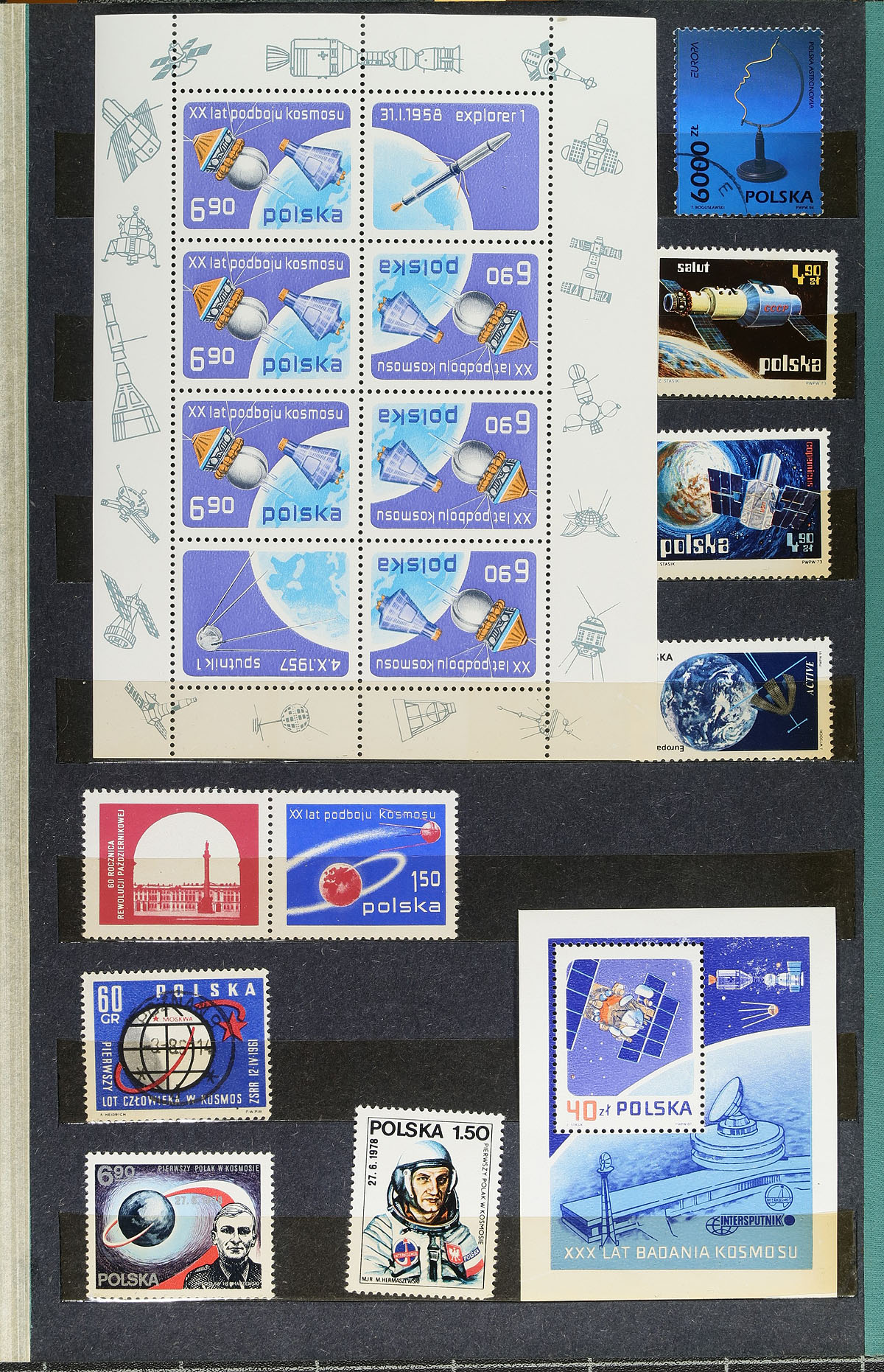 Large accumulation of mint and used Poland, 1918-1995, containing a few thousand stamps on several album pages and in 3 stockbooks. The lot generally ranges from Scott #11/3237, containing singles, several sets, and souvenir sheets, along with some back of the book issues, and some interesting "GROSZY" overprints. The strength of the lot appears to be in the 3 stockbooks, containing year sets from 1982-1984, along with several mint and used issues organized by topic, including air transportation, space, ships, nature, religion, and much more. Unchecked for catalogue values leaving finds for the dedicated collector, overall fine to very fine. Estimate =