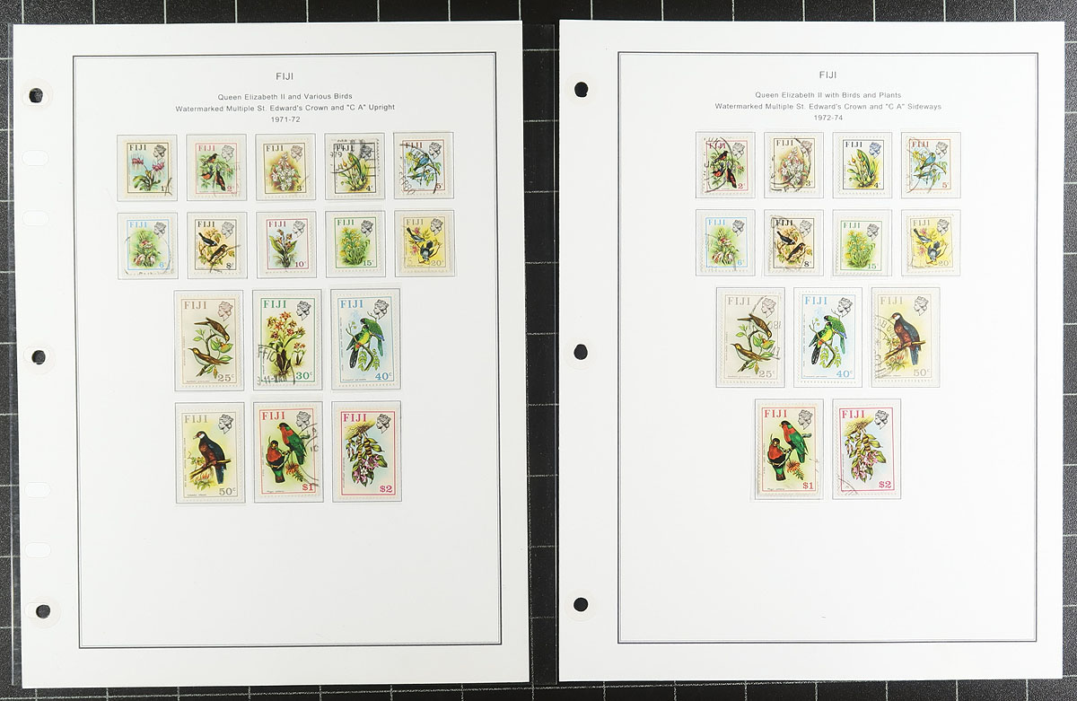 Nice collection of mint and used Fiji, 1878-1995, containing many hundreds of stamps, man on well organized computerized album pages and a few stock pages. This neatly organized collection ranges from Scott #40/739A, containing singles and several sets, along with a few souvenir sheets. Just a few better items include with #s 89-90 (used, $80 total), 117/131A (mix of mint and used, c.v. $88.60), along with some sets cataloguing $10 and up, including 1935 Silver Jubilee and 1948 Silver Wedding, and more. Owner's 2019 Scott catalogue value for the collection totals $871.05. A nice collection that should be continued, overall fine to very fine. All pages photographed online. Estimate =