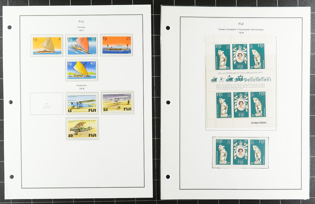 Nice collection of mint and used Fiji, 1878-1995, containing many hundreds of stamps, man on well organized computerized album pages and a few stock pages. This neatly organized collection ranges from Scott #40/739A, containing singles and several sets, along with a few souvenir sheets. Just a few better items include with #s 89-90 (used, $80 total), 117/131A (mix of mint and used, c.v. $88.60), along with some sets cataloguing $10 and up, including 1935 Silver Jubilee and 1948 Silver Wedding, and more. Owner's 2019 Scott catalogue value for the collection totals $871.05. A nice collection that should be continued, overall fine to very fine. All pages photographed online. Estimate =
