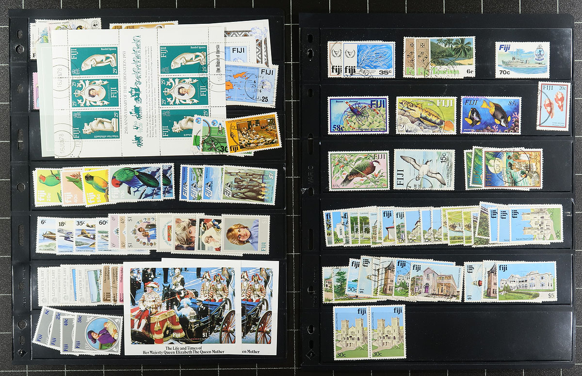 Nice collection of mint and used Fiji, 1878-1995, containing many hundreds of stamps, man on well organized computerized album pages and a few stock pages. This neatly organized collection ranges from Scott #40/739A, containing singles and several sets, along with a few souvenir sheets. Just a few better items include with #s 89-90 (used, $80 total), 117/131A (mix of mint and used, c.v. $88.60), along with some sets cataloguing $10 and up, including 1935 Silver Jubilee and 1948 Silver Wedding, and more. Owner's 2019 Scott catalogue value for the collection totals $871.05. A nice collection that should be continued, overall fine to very fine. All pages photographed online. Estimate =