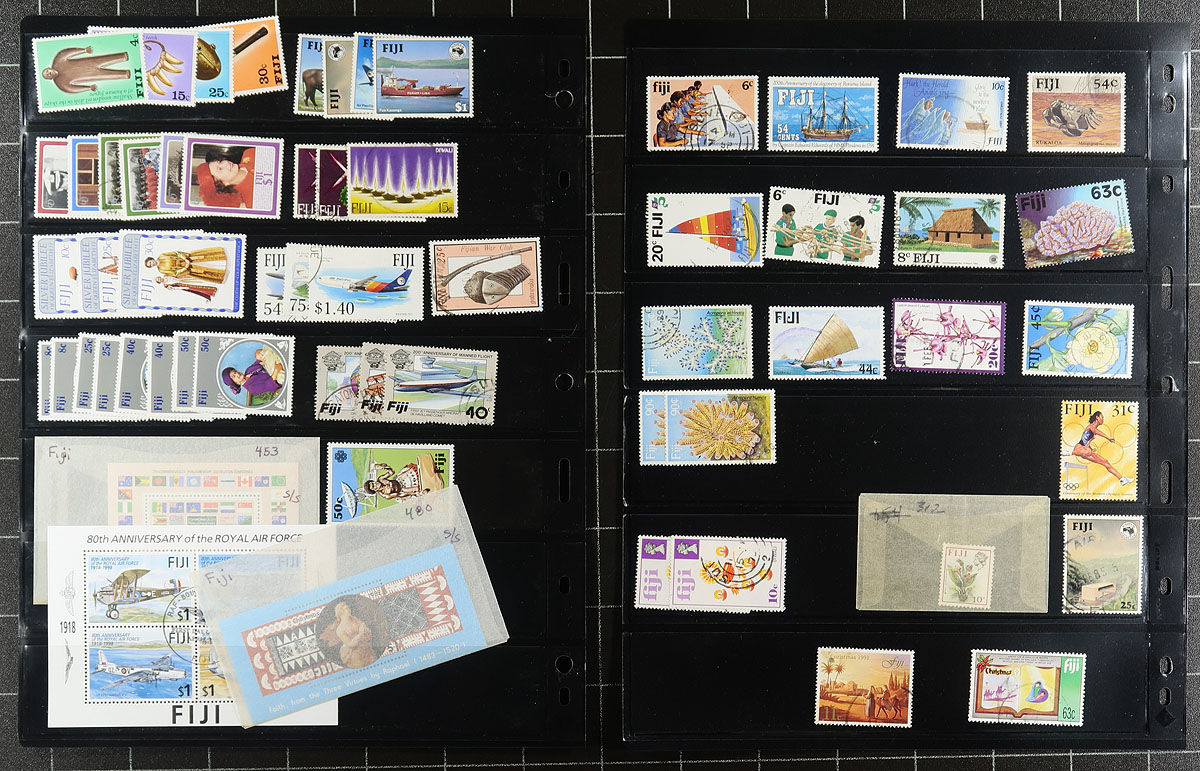 Nice collection of mint and used Fiji, 1878-1995, containing many hundreds of stamps, man on well organized computerized album pages and a few stock pages. This neatly organized collection ranges from Scott #40/739A, containing singles and several sets, along with a few souvenir sheets. Just a few better items include with #s 89-90 (used, $80 total), 117/131A (mix of mint and used, c.v. $88.60), along with some sets cataloguing $10 and up, including 1935 Silver Jubilee and 1948 Silver Wedding, and more. Owner's 2019 Scott catalogue value for the collection totals $871.05. A nice collection that should be continued, overall fine to very fine. All pages photographed online. Estimate =