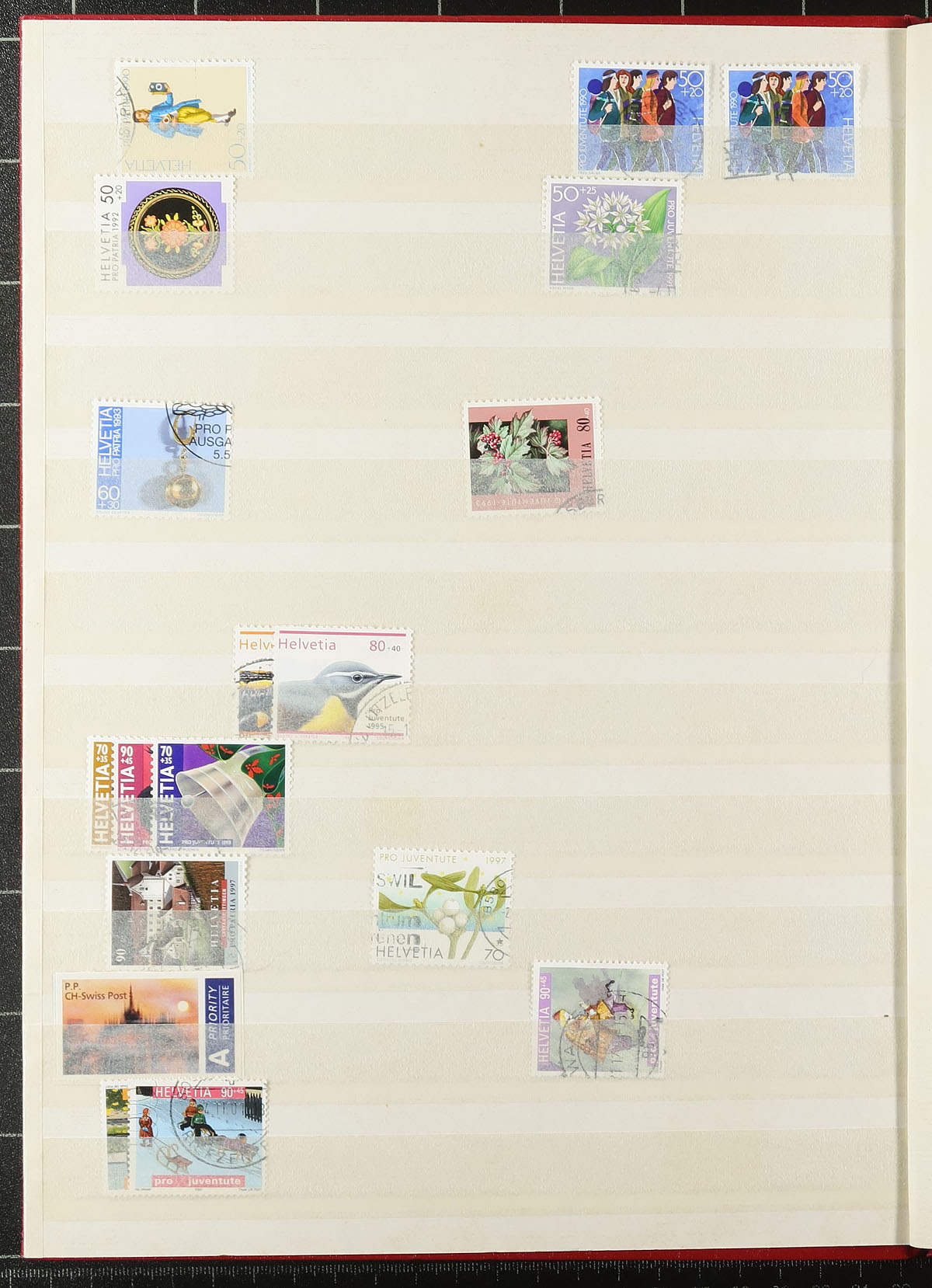 Stock of used Switzerland, 1882-2016, containing a few thousand stamps in a well filled 16 page stockbook. The lot generally ranges from Scott #69/1609, along with semi-postal issues, with heavy duplication for some issues. A cursory check did indicate several classic issues, along with a few better cataloguing items noting Scott #98-100 (c.v. $53.50), with most stamps cataloguing around $1 each. A nice lot for the specialist as we did not check for better papers, postmarks, etc. Overall fine to very fine. Estimate =