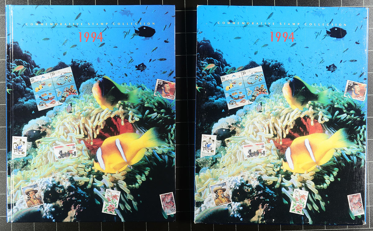 Group of 12 Commemorative stamp collections, for years 1990 (x2), 1992, 1993 (x2), 1994 (x2), 1995-1999. Original retail price for the lot totals $355.85, with a most likely over $100 in face value material alone. A nice clean lot for all collectors. Estimate =